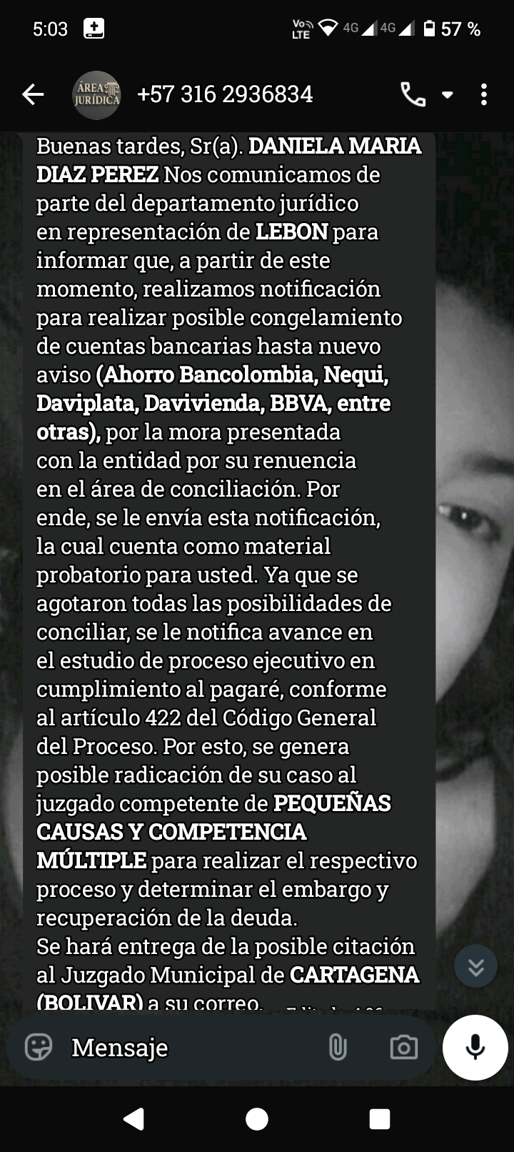 Me mandaron un mensaje por Whatsapp que me van a embargar las cuentas por una deuda de le in de 7 años y yo no sabía de eso